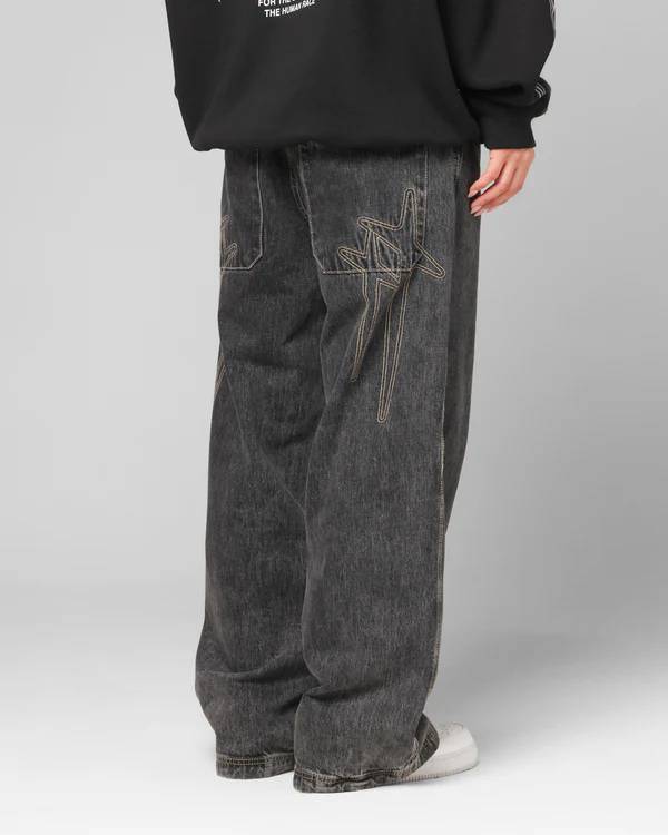 Set your sights on the stars with the latest jean drop at Loiter. The Star Born Jeans feature iconic embroidered star graphics to the rear which pairs perfectly with the baggy fit for a look that is out of this world. Don’t sleep on these.